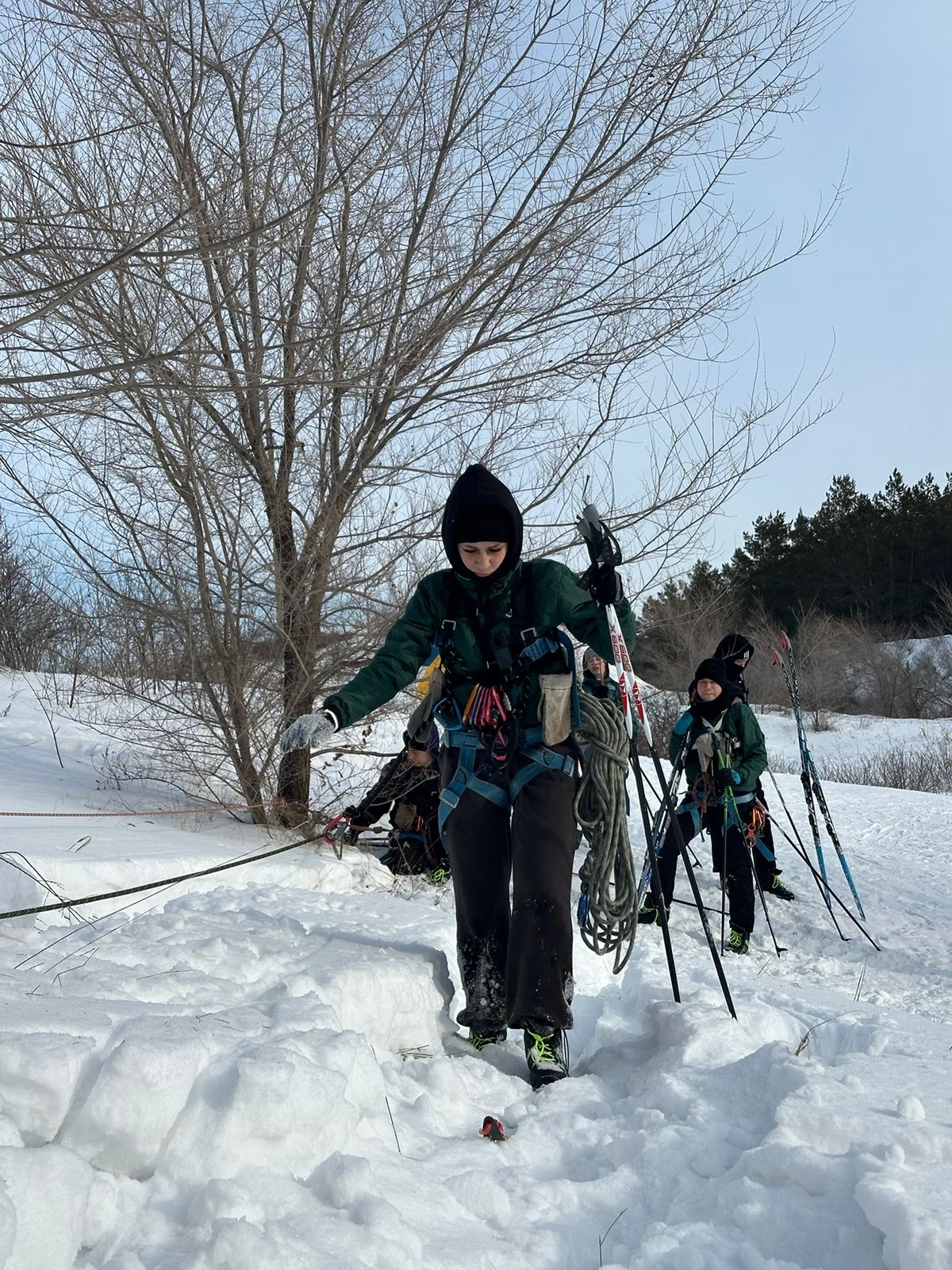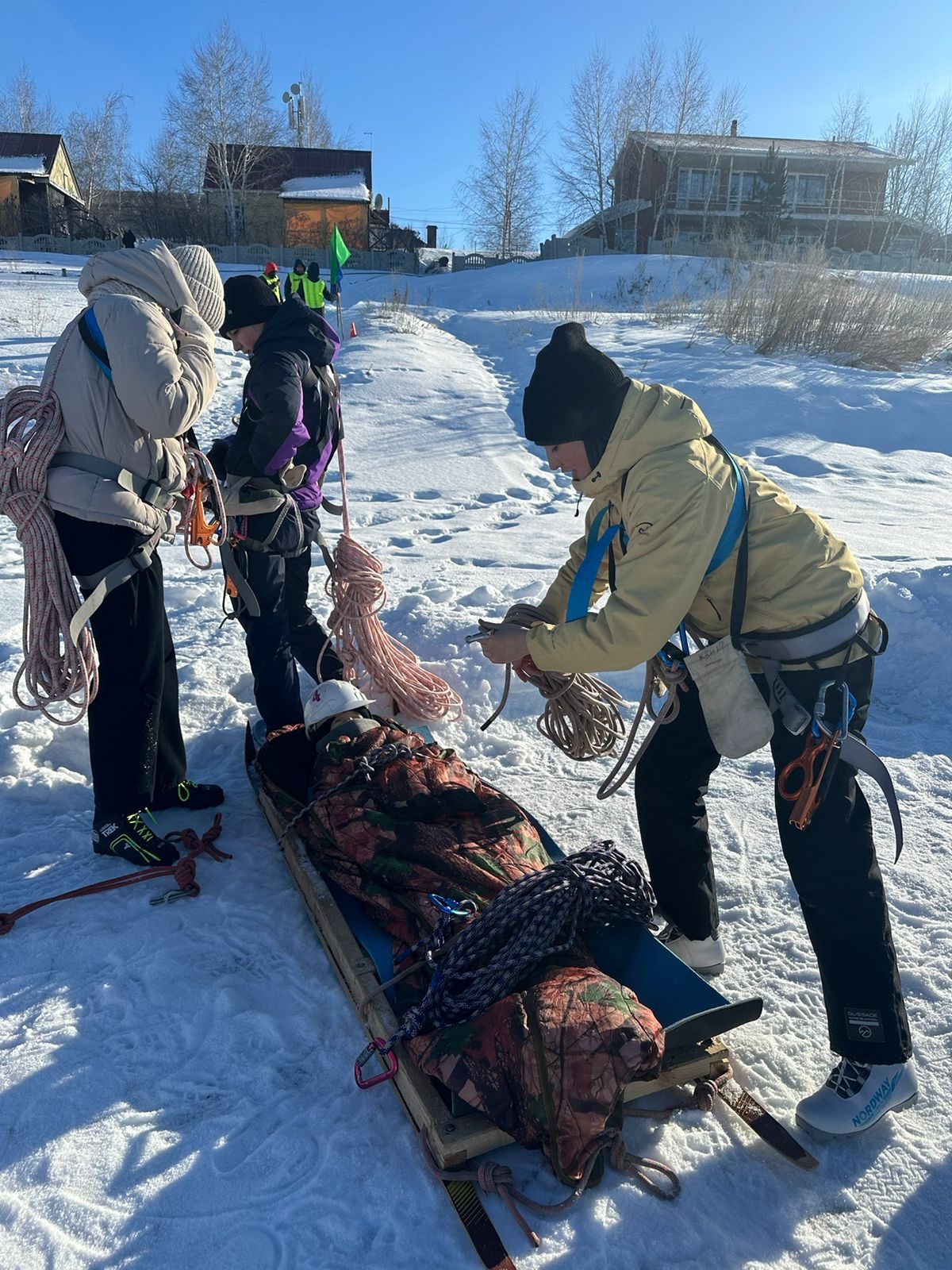 Қатысушылар жәбірленушіні түсіру мен тасымалдауды, сондай-ақ жұқа мұздан өтуді орындады.