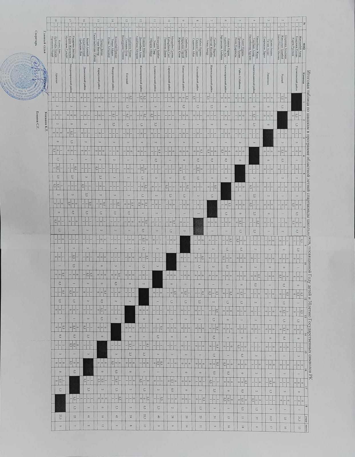 - Итоговая таблица по шахматам 5-7апреля 2022